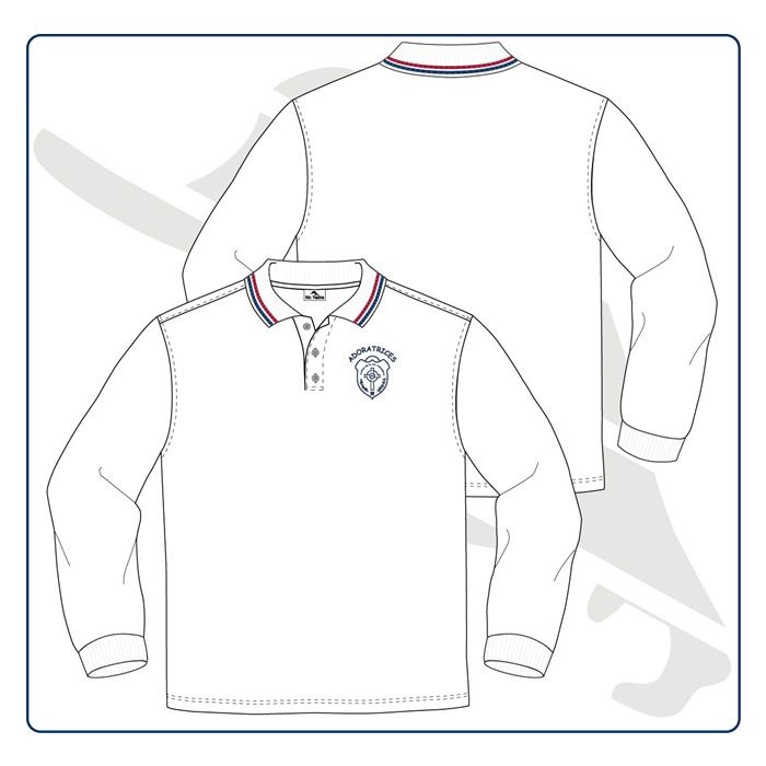 - Polo colegial de manga larga, realizado en pique con cuello y parte final de las mangas en canalé.